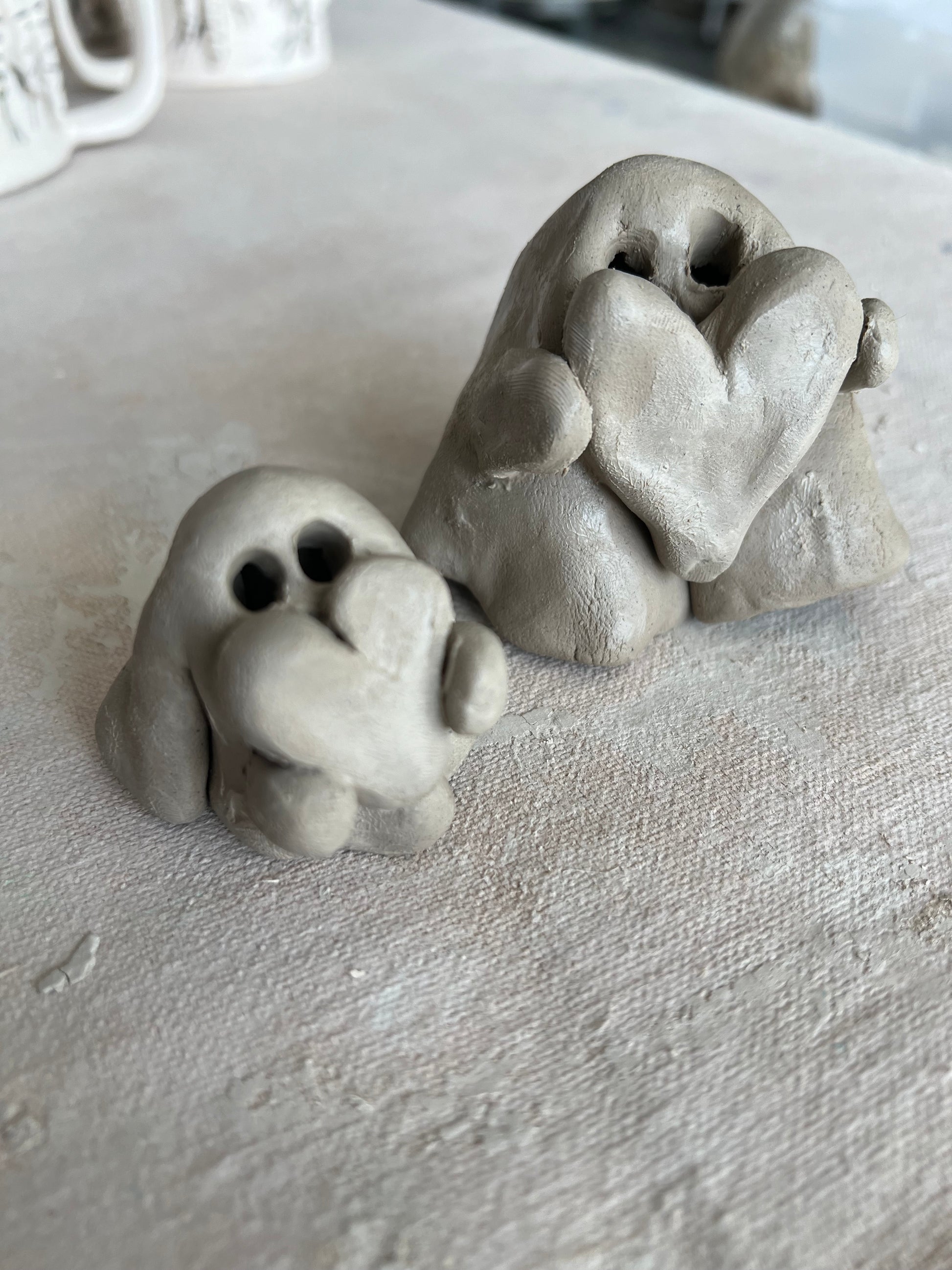 Participants receive enough clay, time and equipment to create up to four ghosts. This workshop is perfect for all ages and all abilities. We schedule by seat, so please be sure to book a seat for each person attending. Dip glazing is included in this workshop, and pottery painting can also be accomplished with an additional booking.